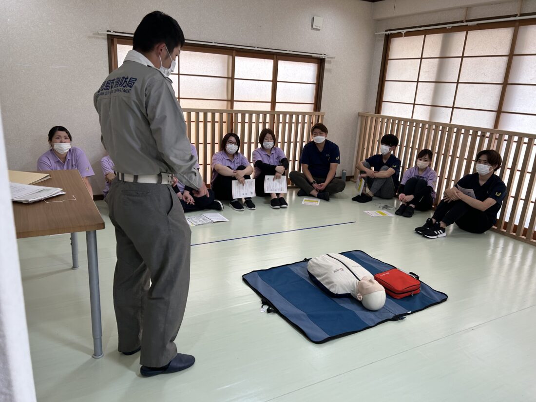 当事業所のおける初めての普通救命講習研修の機会でしたが、ほとんどの職員は心肺蘇生法の講習を以前受講した経験がありました。