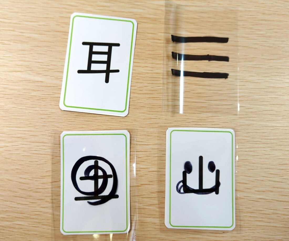 楽しく学習できて、尚且つ覚えられれば、それに越したことはありません。支援の中では、文字や親しみを持ってもらい、楽しみながら行うことも一つの手段としています。例えば、 漢字のカードと、透明のシートに模様を描いたものを準備します。この2枚を重ねて、「隠れている漢字はなにかな」と問題を出して、分かったら書いてもらいます。お互いに問題を出し合っても楽しいですね。