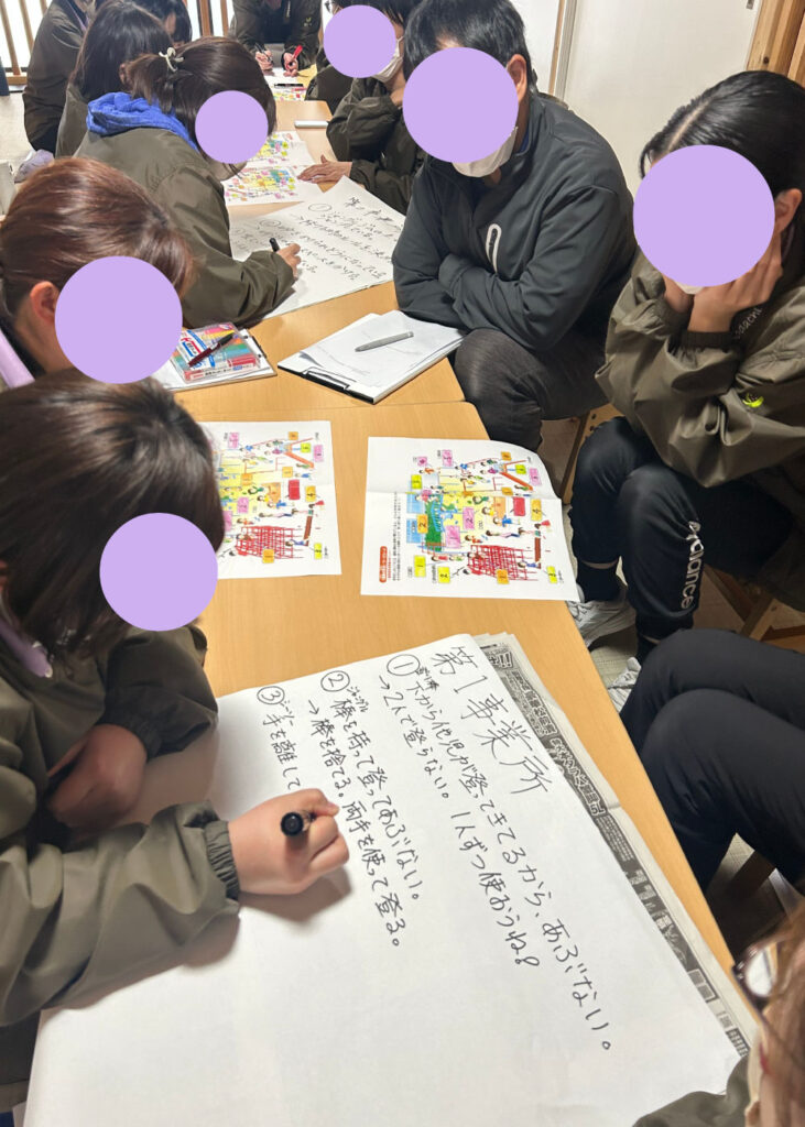 日頃の支援の中で想定される危険場面と、その対応方法について意見を出し合いました。