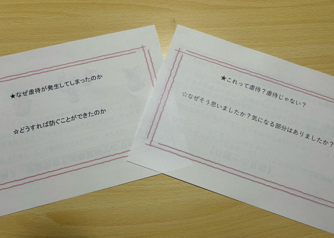 「なぜ虐待は起きてしまったのか」「どのようにすれば防ぐことができたのか」という視点で、各事業所ごとに事例検討を行いました。